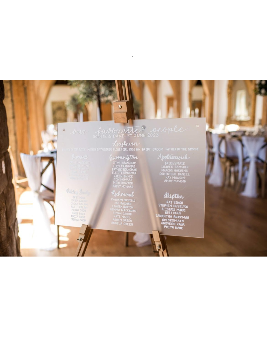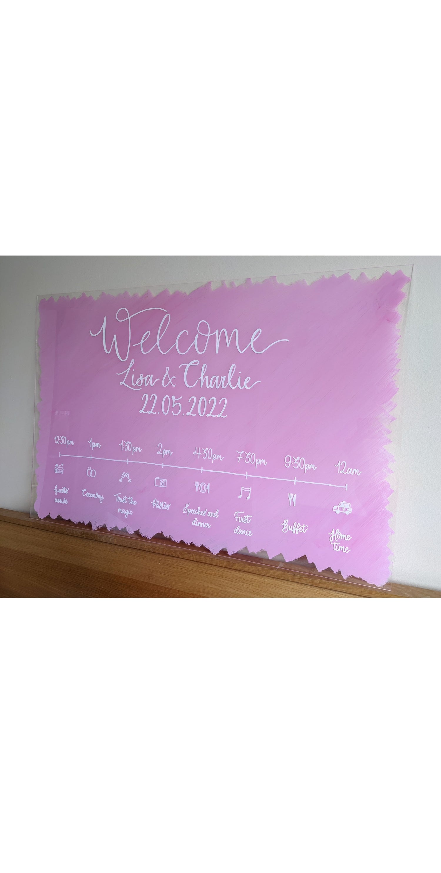Optional upgrade to acrylic for the table plan, welcome/order of the day sign and A4 and A5 signs
