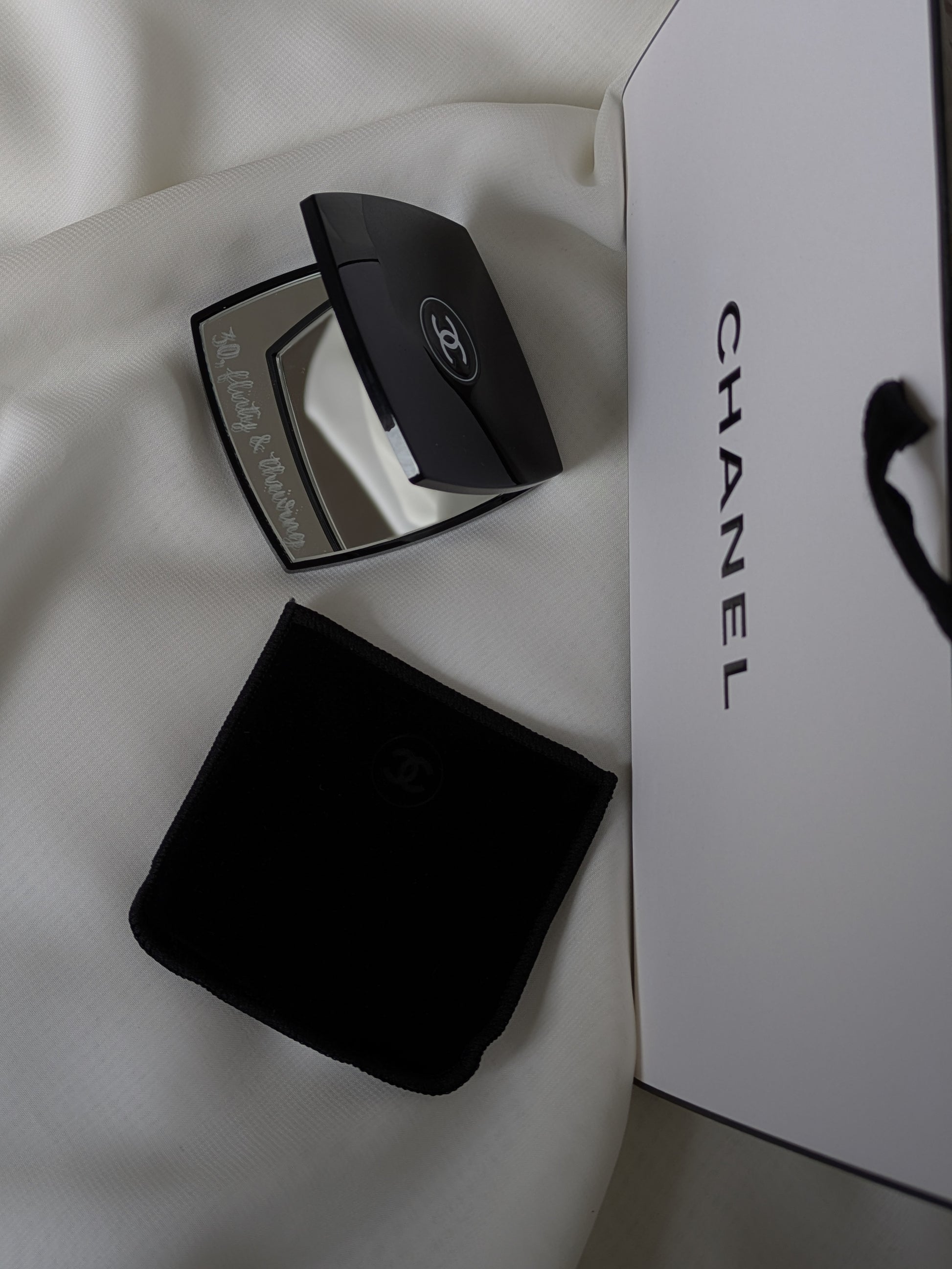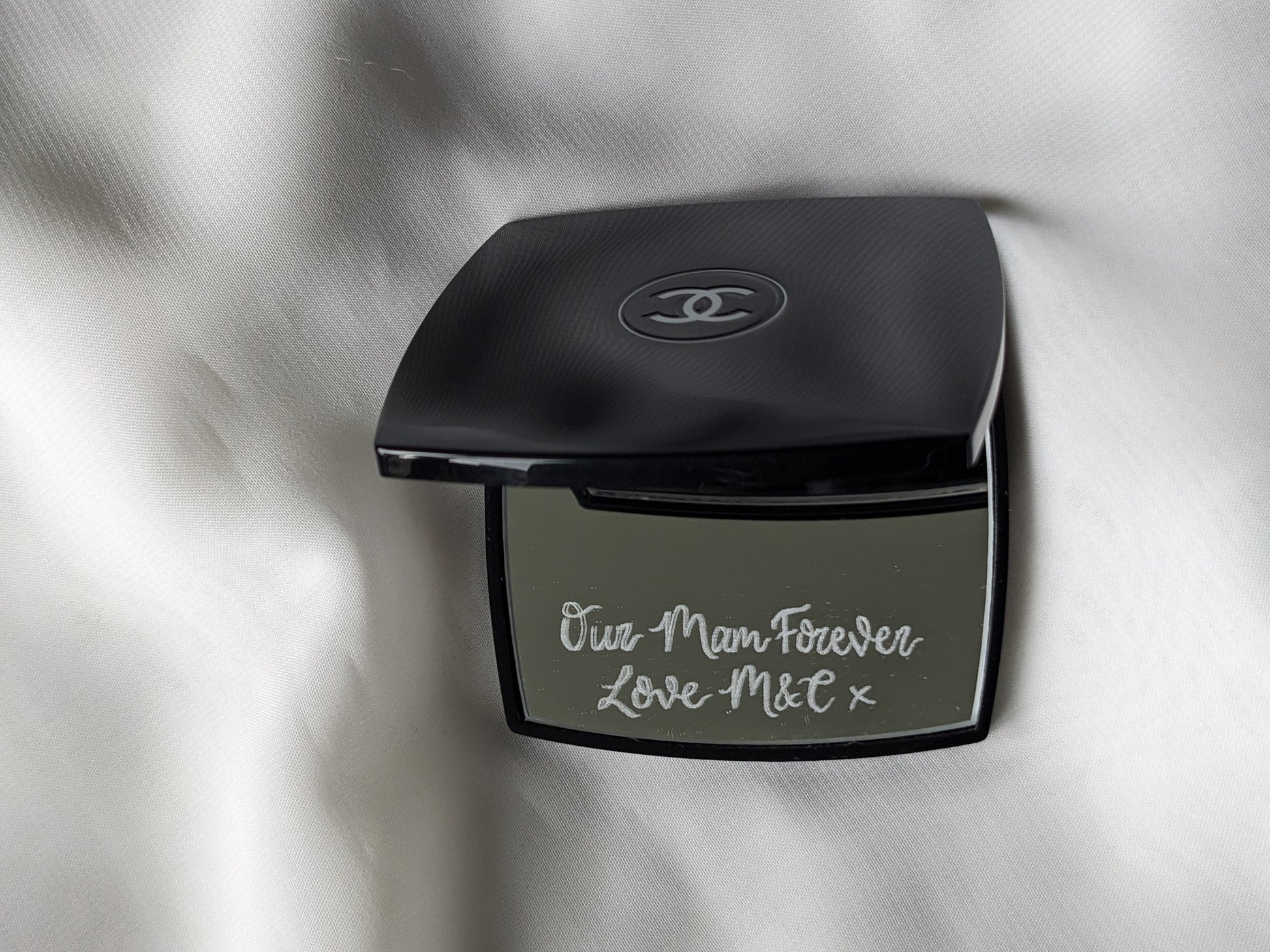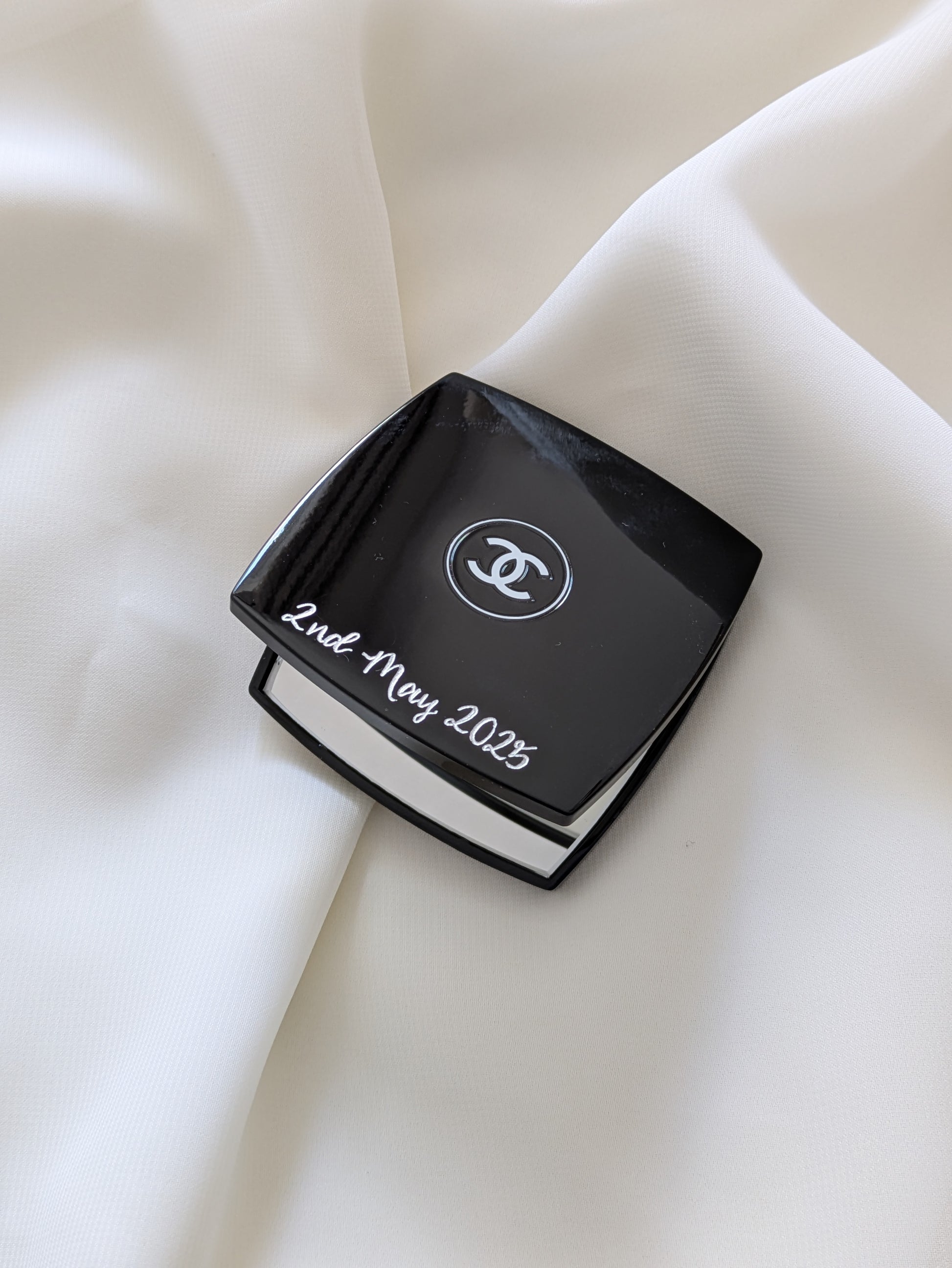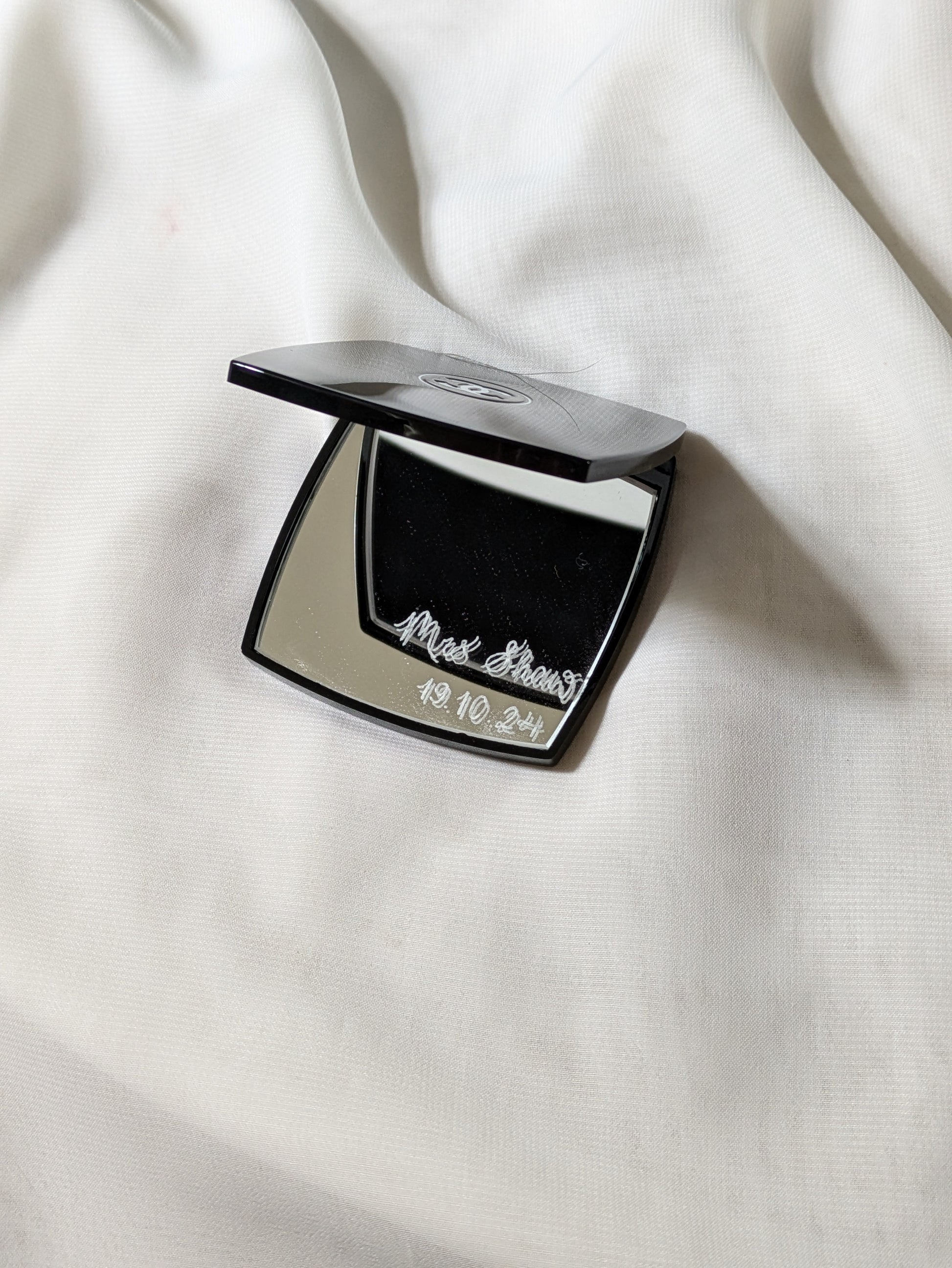 This is a genuine Chanel compact mirror, and engraving suggestions include::