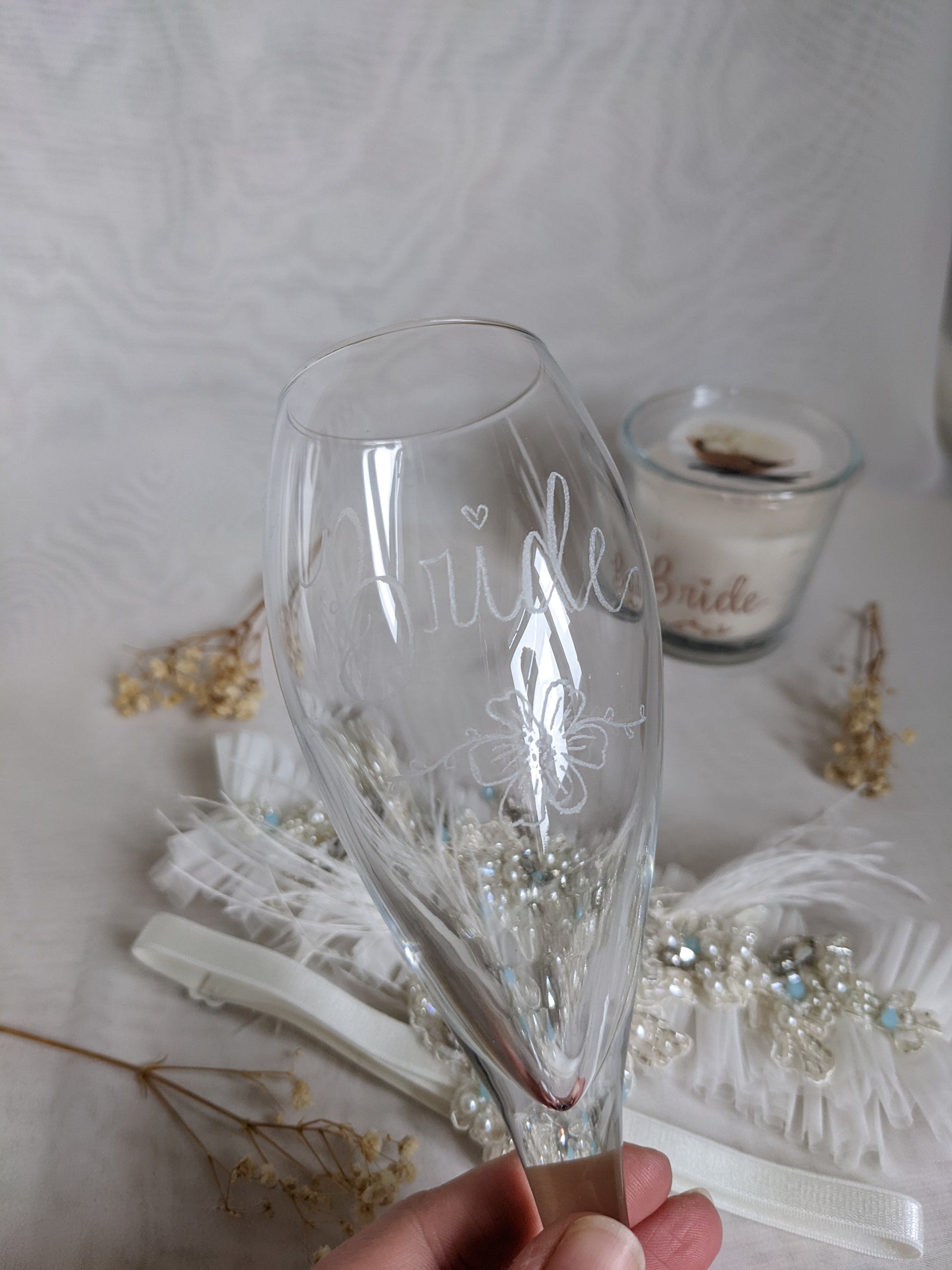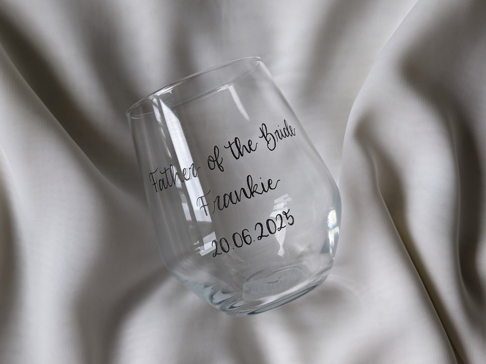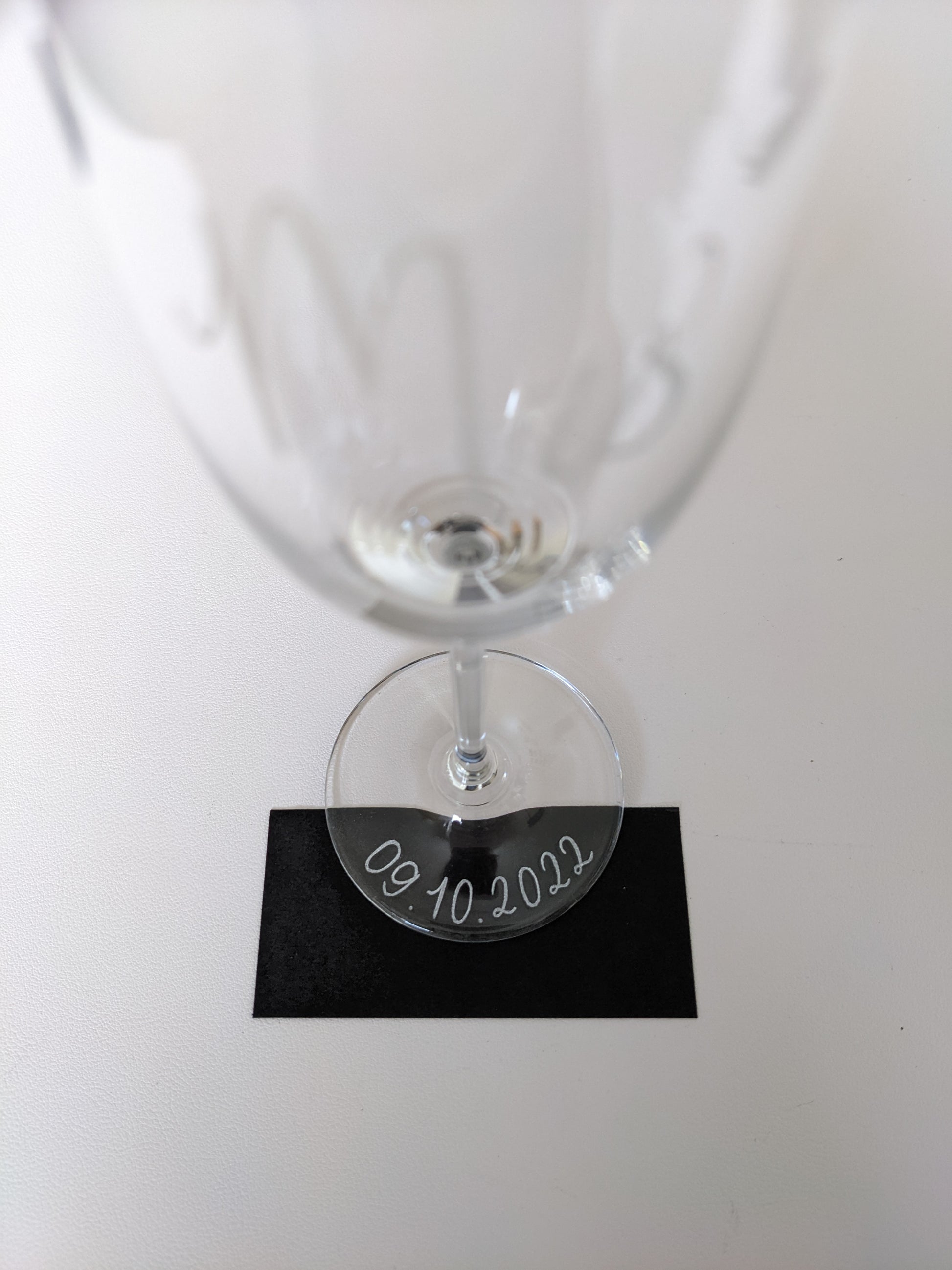 Up to 3 or 5 words (or 1 word = short date (e.g. 29/02/2020)) available on the front or base of the glass.  Engraving is available on the base of the glass for champagne, gin or wine style glasses only.